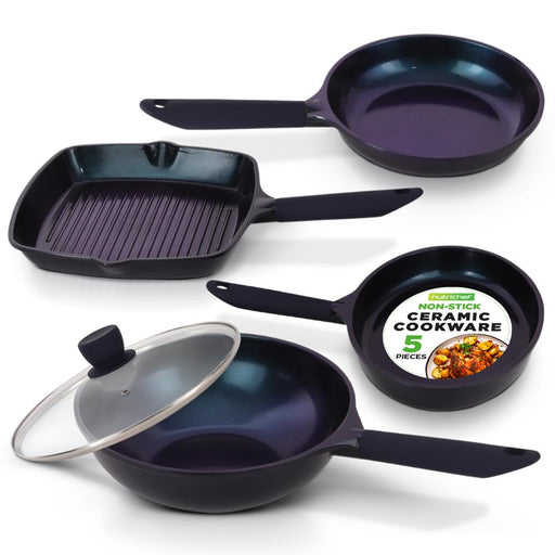 Ensemble de cuisson à la poêle de 5 pièces - Ustensiles de cuisine en céramique de haute qualité (Blue Diamond)