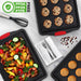 • Fabriqué en acier au carbone flexible et antiadhésif avec des poignées en silicone rouge